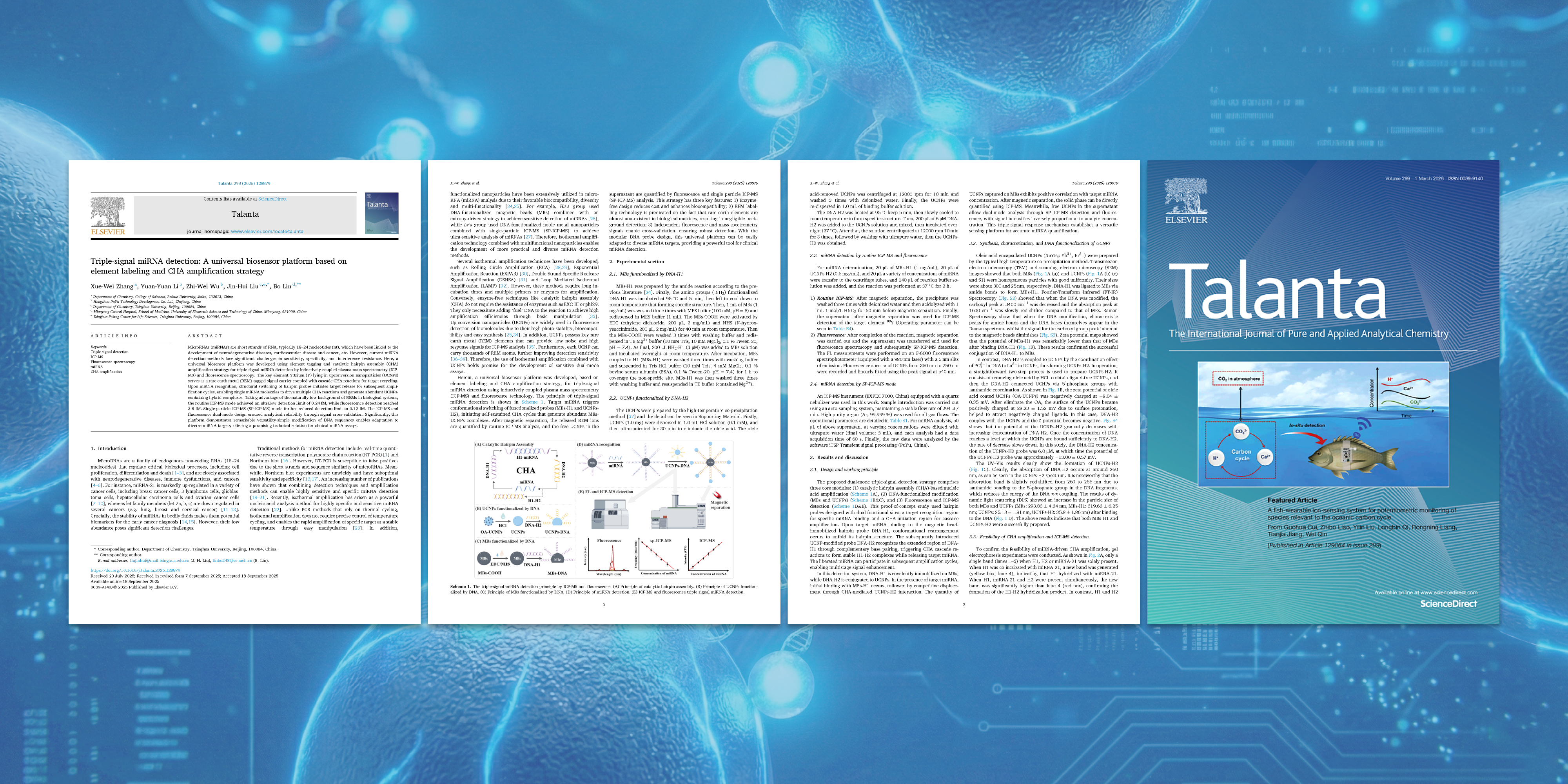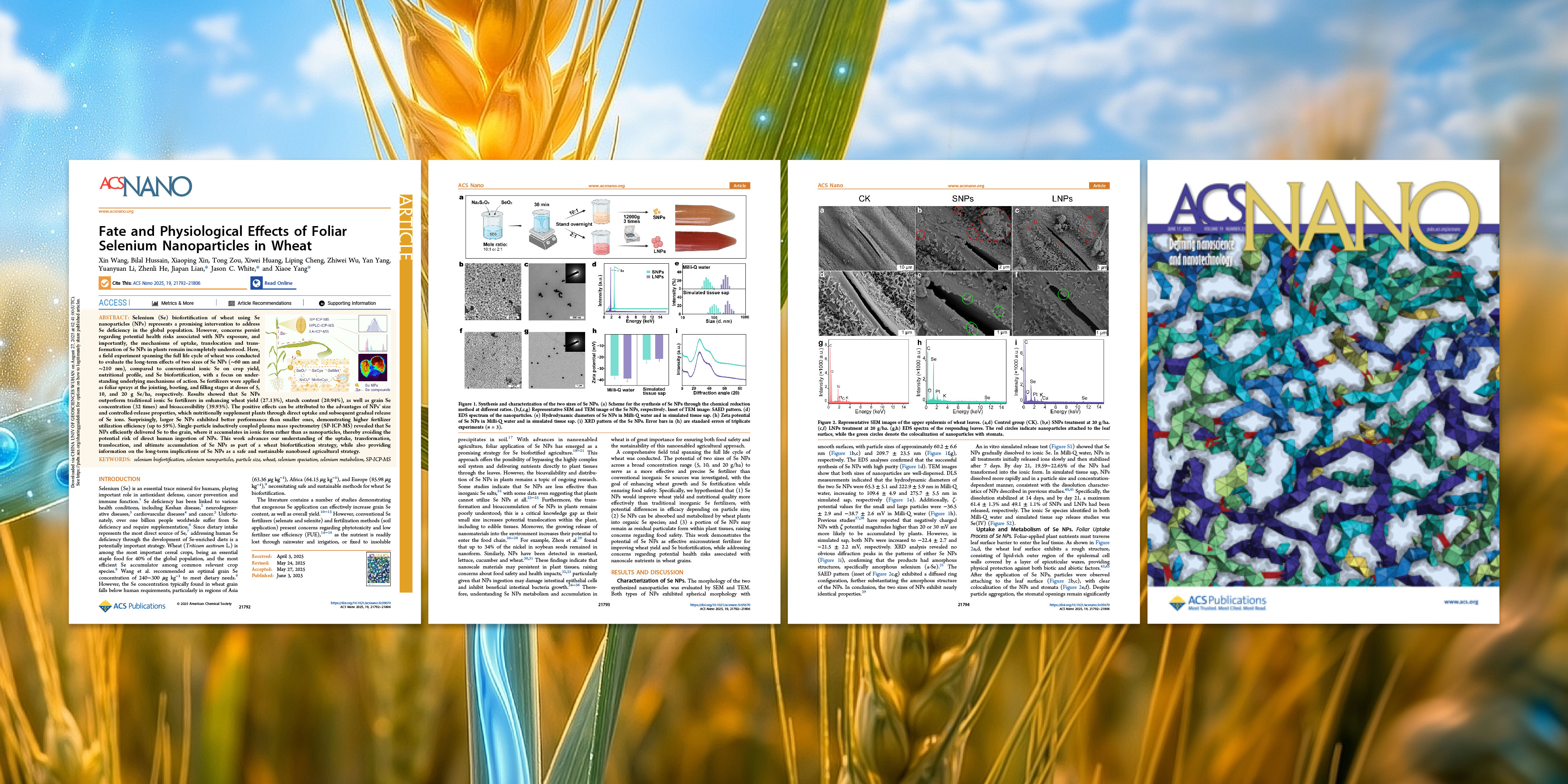 一项研究发表于《ACS Nano》,聚焦小麦叶片硒纳米颗粒(selenium nanoparticles,简称 Se-NPs)的行为机制;另一项发表于《Talanta》,致力于 miRNA 三重信号检测平台的构建。