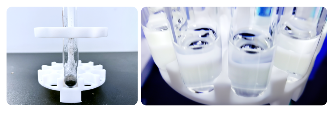 最终,团队通过谱育科技的“超级微波”消解技术,实现石墨样品的完全消解:溶液由黑转澄清,结果稳定且具有良好重复性。