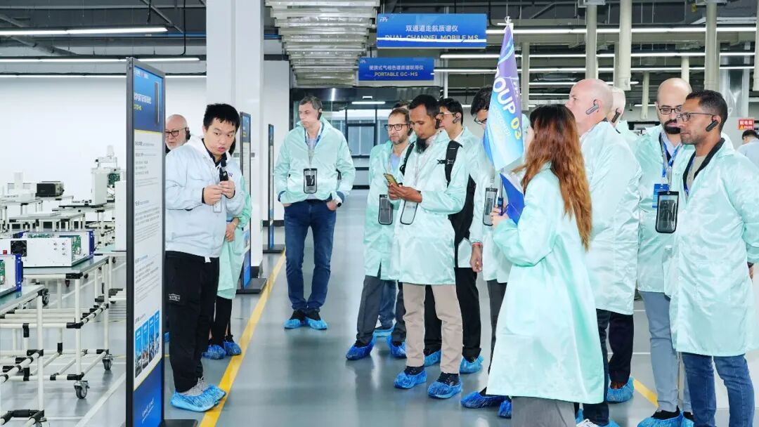 在工程师引导下,海外客户分组深入基地,实地了解高端科学仪器从研发设计、核心部件制造、精密加工到整机集成、测试验证、交付与服务支持的关键环节。